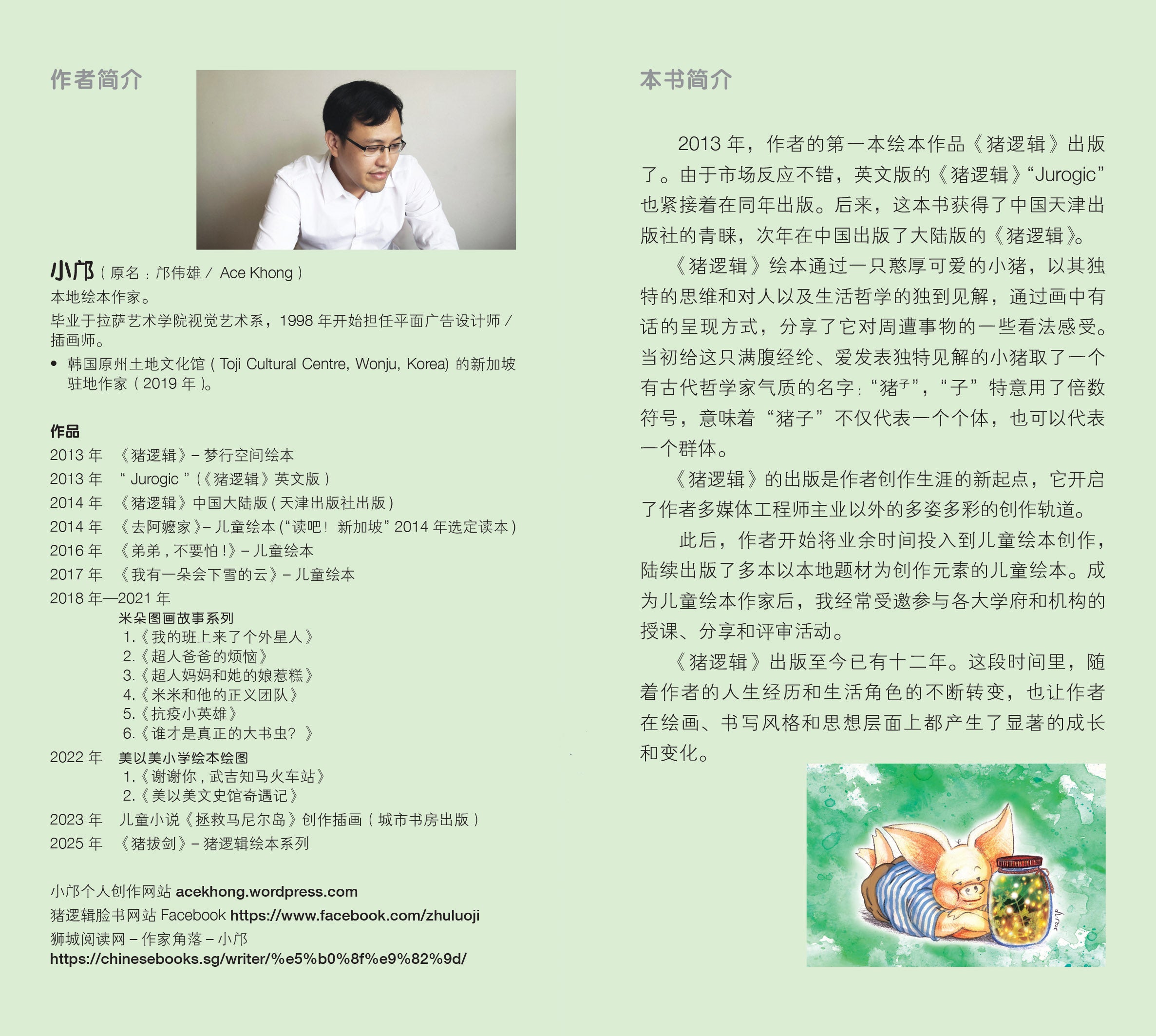 《猪拔剑》是小邝在《猪逻辑》绘本出版十二年后,再次以猪子为主角,全新创作的图文书。从《猪逻辑》到《猪拔剑》,小邝的人生经历和生活角色的不断转变,新作品呈现了他在绘画、书写风格和思想层面上的显著成长和变化。如果说《猪逻辑》的内容和创作元素承载了小邝年少时期的生活感悟,那么这本《猪拔剑》记录的则是他中年以后的笑看红尘。